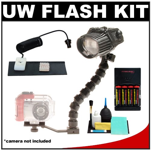 The Intova flex arm & bracket is constructed of hard plastics with fortified nylon making it rigid to keep the strobe in the right position. Extremely lightweight and compact, that provides a comfortable handheld grip for underwater photography. Easy velcro attachment for strobe activation. Particularly useful in ultra clear water where light from internal flash can dissipate rapidly and not activate slave unit on flash.Provide your camera with plenty of power with 4 ultra-high capacity 2900mAh Nickel Metal Hydride (NiMH) batteries and a multi-voltage rapid charger.